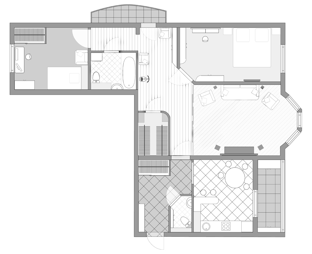 Открыть в новом окне Планировка трешки И155